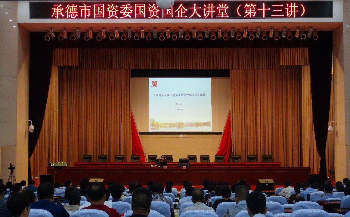 本次大讲堂由市国资委党委委员、副主任陈宏同志主持,市国资委监事会主席张楠同志向参会人员介绍了我市印发的《承德市市属国有企业监督管理办法》具体要求,并对该办法进行了详细解读;我公司总会计师赵俊华同志就融资工作进行了讲解,并向参会人员分享了开云电子体育在融资活动中的经验。