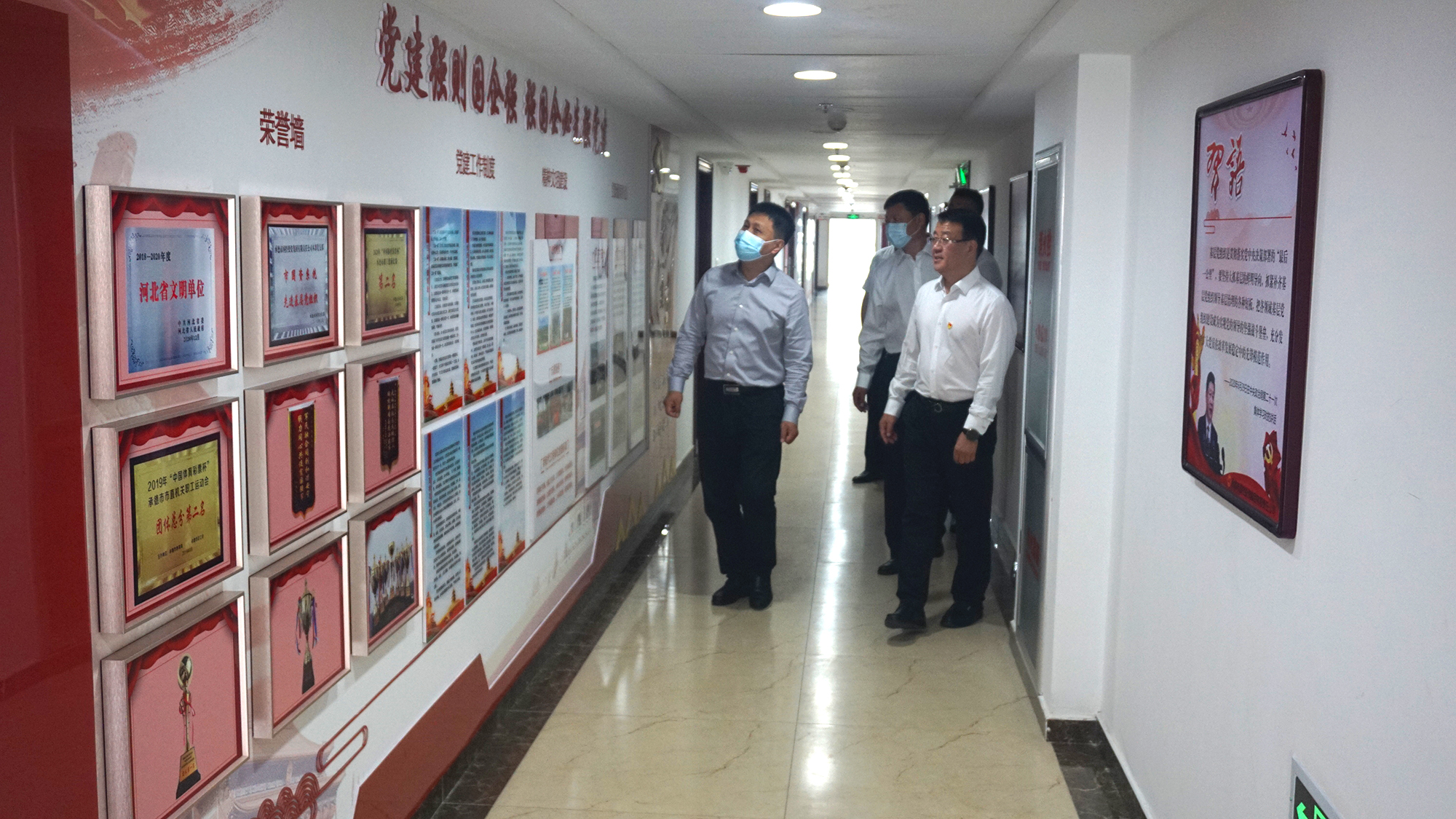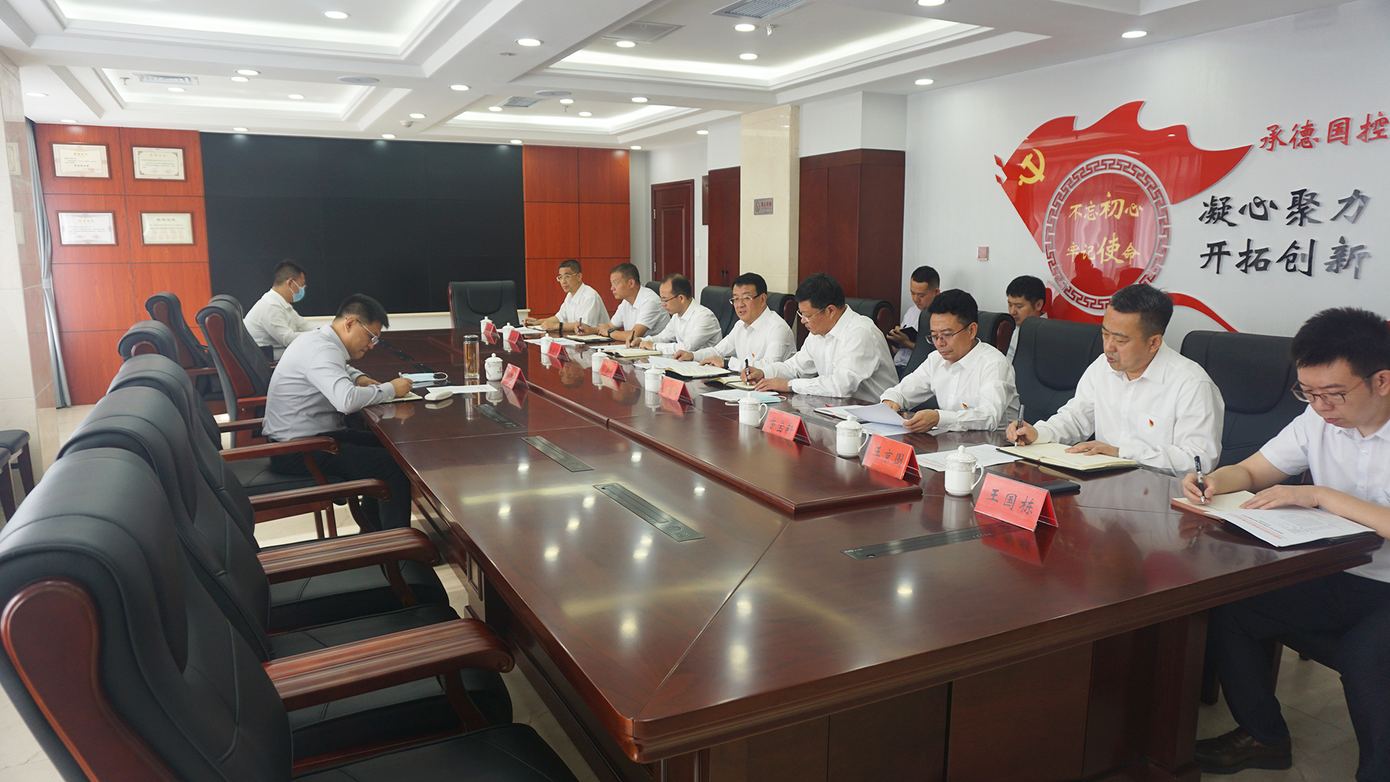 郭旭涛书记首先参观了集团公司党建文化墙、党员活动室和庆祝建党100周年书画摄影大赛作品展,随后召开座谈会议,集团公司全体班子成员参加会议。