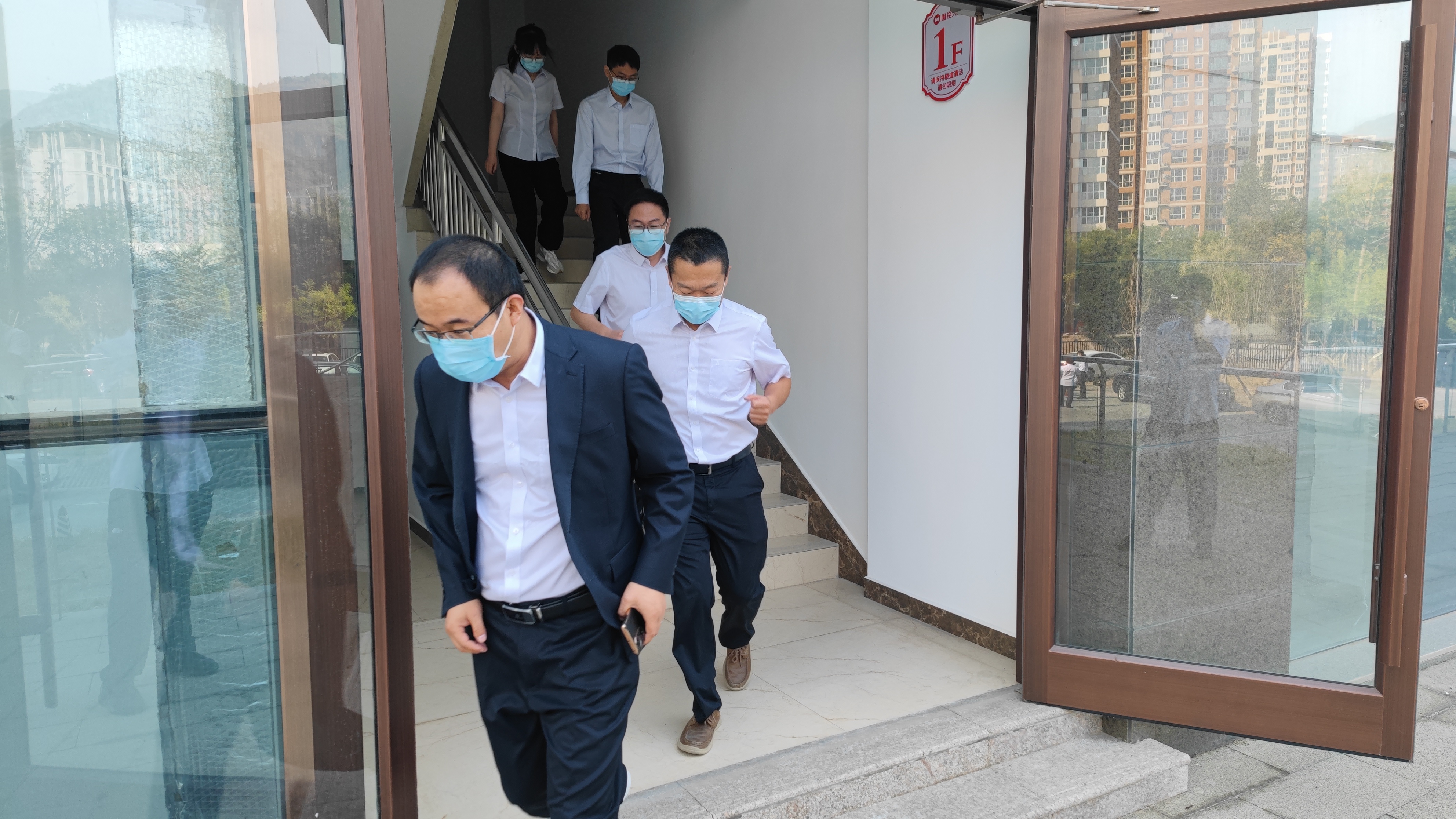 演练模拟国控大厦办公楼内突发火灾,消防控制室值班人员发现火情后,立即进行上报,启动消防应急疏散预案,同时迅速拨打火警报警电话。指挥组、灭火组、疏散组、救护组等成员按照分工,有条不紊地切断非消防电源,启动消防报警系统,疏散楼内职工等内容。