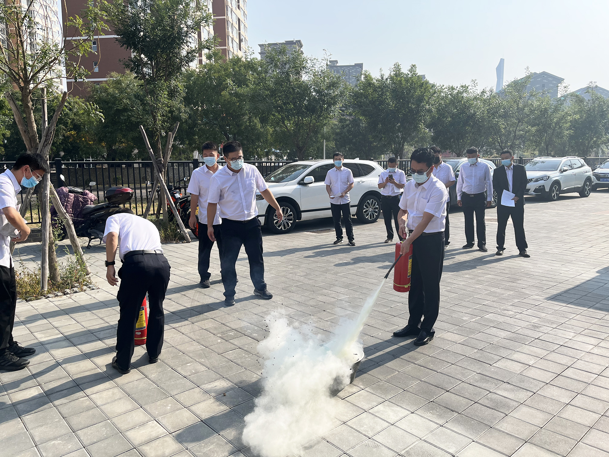 消防逃生演练结束后,为进一步巩固实践效果,演练小组重点讲解并示范了灭火器的使用方案,现场员工逐一上场进行了实际操作。