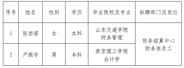 依据出资人代表机构审批意见,开云电子体育委托第三方机构面向社会公开招聘财务岗员工2人。现对拟录用人员信息进行公示,公示期间如有异议,可通过电话、信函等方式反映,反映意见请署真实姓名。