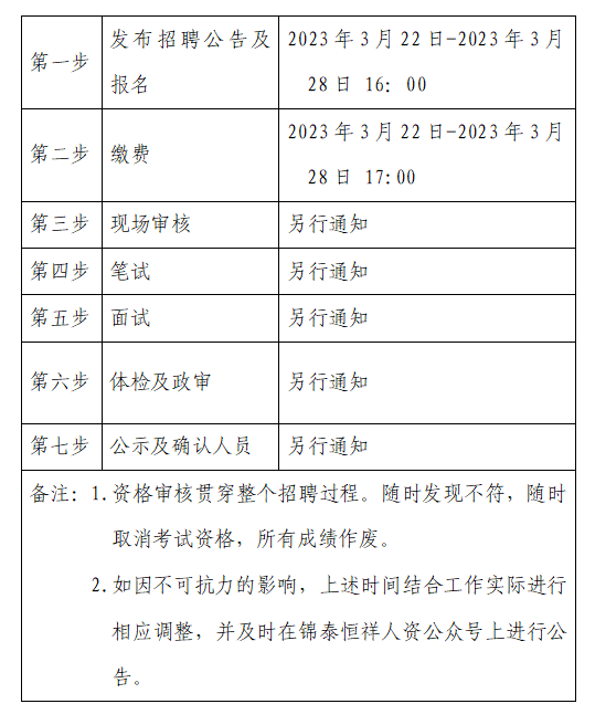 (二)体检时间、地点及注意事项在“锦泰恒祥人资公众号”进行通知。